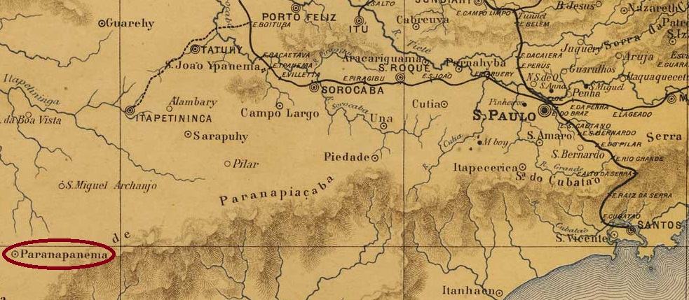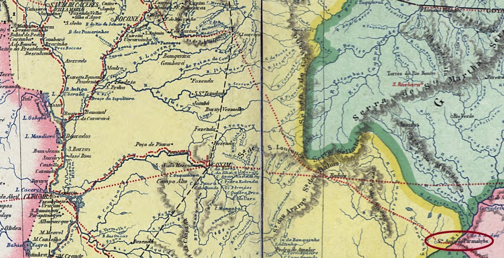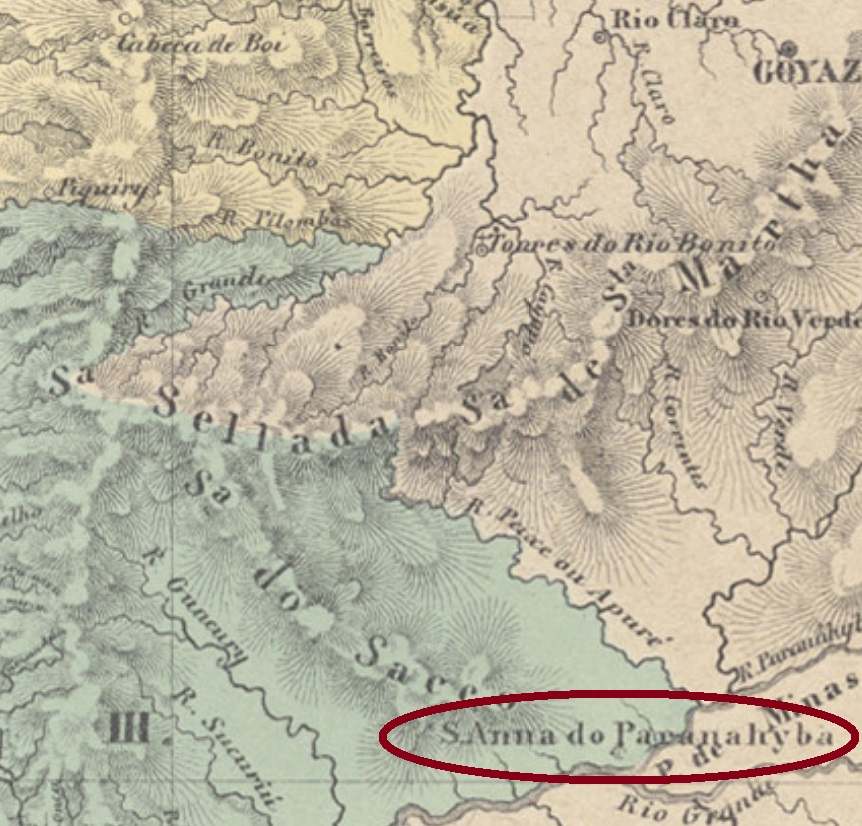 The locality takes its name from the Paranaíba River (formerly also spelled Paranahyba or Parnahiba), which also gives its name to a village in the province of Minas Gerais (SMG-2765). We are now over 600 km downstream in the province of Mato Grosso (today in the state of Mato Grosso do Sul). From April 1835, Sant’Anna do Paranahyba was a district of the município of Cuiabá, although the provincial capital was almost 900 kilometres to the north-west. In April 1838, it was elevated to a freguesia and from July 1850 belonged to the newly founded Vila de Albuquerque. In July 1857, Paranahyba was granted city status. Since October 1938, the municipality has simply been called Paranaíba.