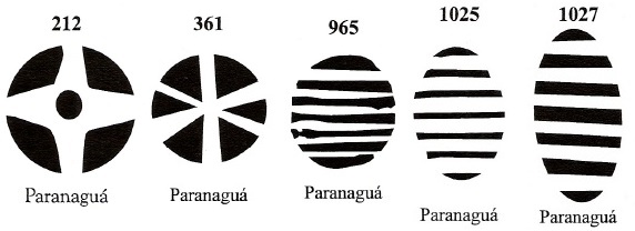 James Dingler und Klerman W. Lopes haben in Mute Cancellations of the Brazil Empire/ Carimbos Mudos do Brasil Império (Brazil Philatelic Association, Rio de Janeiro, 2000) 10 stumme Poststempel aus Paranaguá aufgeführt: