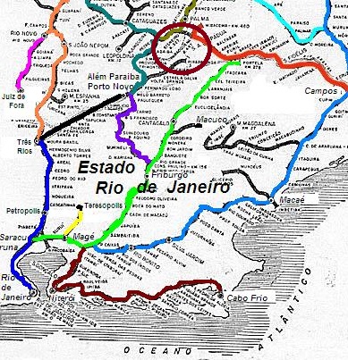 Paraokena railway station was opened in 1883 by the E.F. Sto. Antonio de Pádua railway company (Campos-Miracema line). It was located on the south bank of the Pomba River in the municipality of Sto. Antônio de Pádua, 270 kilometres northeast of the capital Rio de Janeiro. The railway line was transferred to E. F. Macaé e Campos in 1884 and to E. F. Leopoldina in 1887. From 1975 until its closure in 1996, it belonged to Rede Ferroviária Federal S. A. (estacoesferroviarias.com.br). Since November 1924, the station has been located in the district of Paraoquena (today’s spelling). The tracks are still there, but the station building does not look well maintained. In 2011, it was still being used as a residential building.