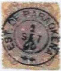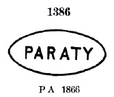 Der bisher älteste Poststempel ist PMT-0075a der in P. Ayres’ Catálogo de Carimbos Brasil-Império (São Paulo, 1937, 1942) die Nr. 1158 erhielt. Rechts die Abbildung aus R. Koesters Carimbologia XXIX. Koester ordnete diesen Stempel dem Postamt Santa Rita do Paranahyba in der Provinz Goiás (SGO-0225) zu. Das ist jedoch nicht möglich, da der Poststempel auf Ochsenaugen- (1843 ff.) und Inclinados-Ausgaben (1844 ff.) gefunden wurde und diese Agentur erst 1875 entstand: