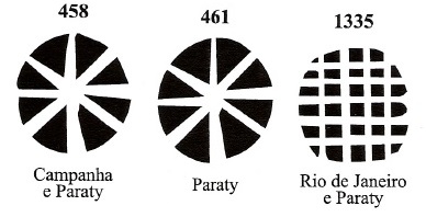 James A. Dingler und Klerman W. Lopes haben drei stumme Poststempel in Mute Cancellations of the Brazil Empire / Carimbos Mudos do Brasil Império (Brazil Philatelic Association, Rio de Janeiro, 2000) aufgeführt: