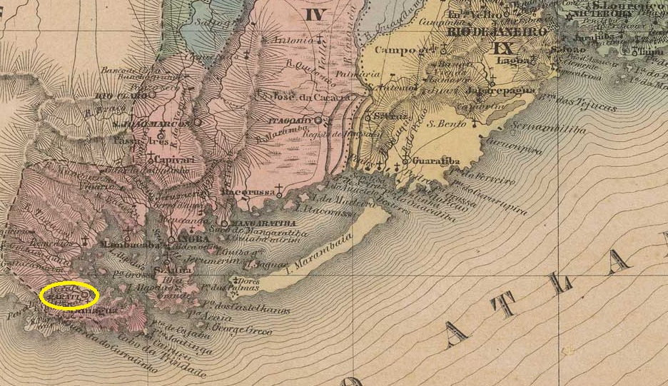 According to Nova Monteiro in Administrações e Agencias Postaes do Brasil Imperio (Brasil Filatelico/RJ, 1934–1935; reprinted by SPP 1994–1999), there had been a post office there since October 1830. A second agency was registered in 1877 in the directory of imperial post offices (Tabella das Agencias do Correio do Imperio, Rio de Janeiro, 1885). The only imperial postmark to date is PPI-0105b (Fuad Ferreira Fo. collection).