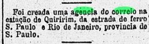 Scheinbar dauerte es aber nicht mehr lange mit dem Bahnhofsgebäude, da das dazu gehörige Postamt im Dezember 1886 durch die Presse in Rio angekündigt wurde: