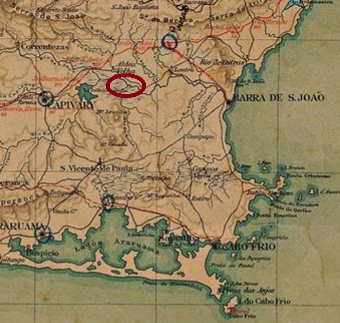 Die alte Siedlung namens Rio Morto war sicher am gleichnamigen Fluss gelegen, nahe Aldeia Velha in der Freguesia Nossa Senhora da Conceição do Amparo das Correntezas, die dem Município von Capivary (heute: Silva Jardim) angehörte.