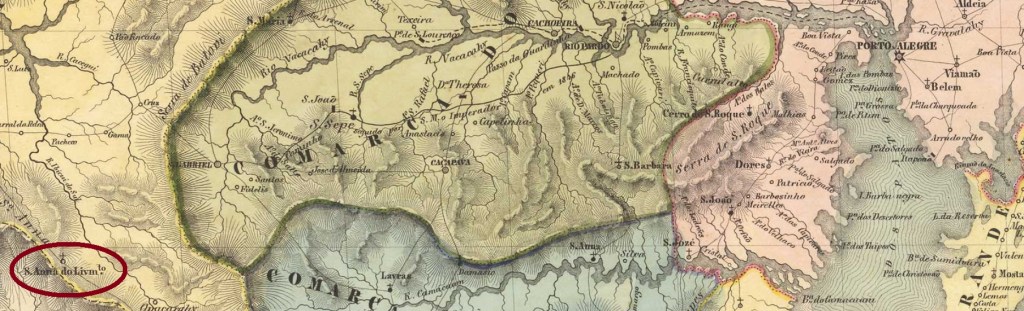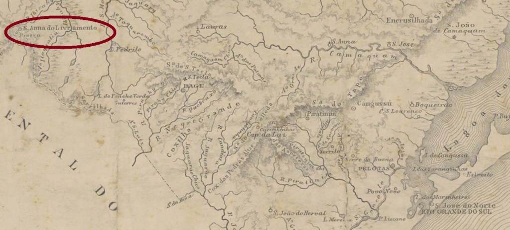 This Sant’Anna in southern Brazil was since August 1848 a district in the municipality of Alegrete, situated at the frontier line to Uruguay, almost 500 km west of the provincial capital Porto Alegre. In February 1857 it ascended to a villa and in April 1876, to a town. Between 1938 and 1957 the toponym was officially simplified to Livramento, but now the old denomination is back.