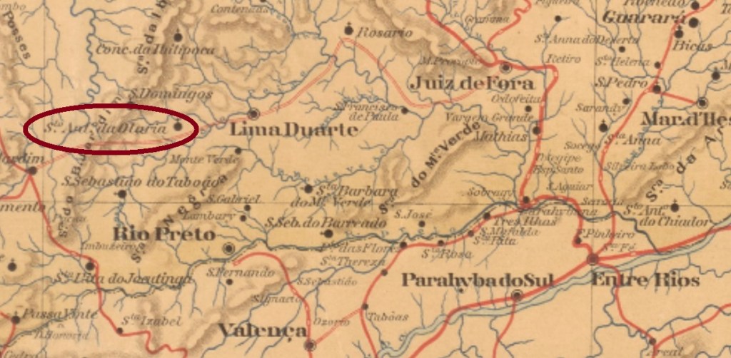 Wie Paula Sobrinho (História Postal de Minas Gerais, Belo Horizonte, 1997) schreibt, gibt es dort ein Postamt seit März 1885. Ein Stempel des Kaiserreichs wurde gefunden. SMG-2975a (Samml. Karlheinz Wittig) kommt in schwarz und blau vor und hat einen Doppelkreis mit den Inschriften S. ANTo. DA OLARIA oben sowie (MINAS) unten. Die Daten in der Mitte entstammen dem Zeitraum 1889-1895.
