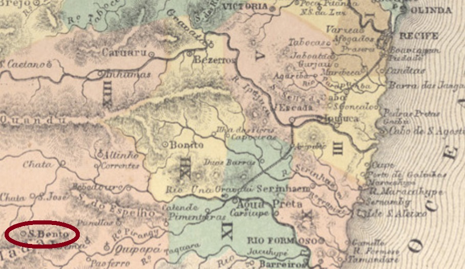 This São Bento in the Pernambuco province was since May 1853 a district in the municipality of Garanhuns, situated round 200 km west of the capital Recife. In April 1860 it was elevated to a villa and in June 1900, to a town, which since December 1943 is called São Bento do Una.