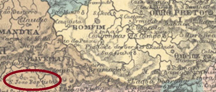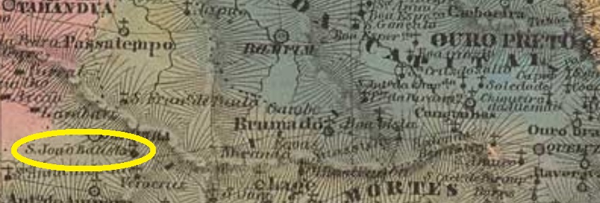 Among the 4 localities in the province of Minas Gerais, which were named after St. John Baptist in the 1880 Postal Guide (Guia Postal do Império), this was probably the smallest. It was a curato in the municipality of Oliveira, about 160 km southwest of the capital Ouro Preto. In November 1842, the settlement was elevated to a district, and in September 1871 to a freguesia in the municipality of Bom Successo. However, it returned as a district of Oliveira in November 1923, and since December 1943, the district has been called Morro do Ferro (= Iron Mountain), named after the great hematite occurrence of the region.