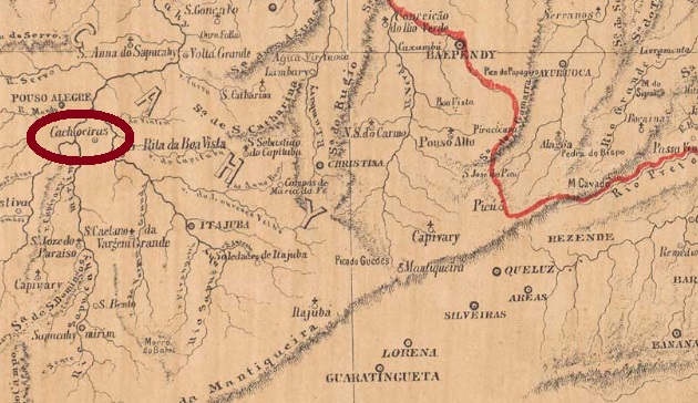 Wie Paula Sobrinho im Historia Postal de Minas Gerais (Belo Horizonte, 1997) schreibt, gibt es dort ein Postamt seit Dezember 1879. Der bisher einzige kaiserliche Stempel ist SMG-2355a (Samml. José A. Junges): ein Doppelkreis mit der Inschrift S. JOĀO BAPTA. DAS CACHOEIRAS oben und einem Ornament unten, das wie eine vierblättrige Blume aussieht. Die Daten in der Mitte entstammen dem Zeitraum 1889-1906.