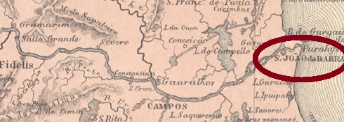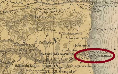 This village was from January 1756 a freguesia called São João da Praia (= on the beach), it belonged to the villa of Parahyba do Sul and was located on the delta of the river of the same name, about 300 km northeast of the capital Rio de Janeiro. In January 1833, it rose to the villa of São João da Barra (= of the estuary), and in June 1850 to a town.