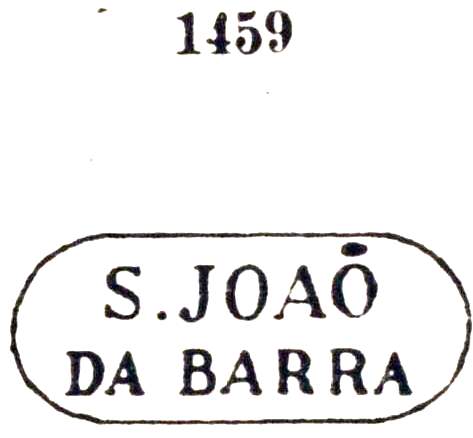 It was followed by SRJ-0940b (Coll. José A. Junges): a double circle with inscription S. JOAO DA BARRA above. The dates at the centre were found for the period 1876-1889. Then came SRJ-0940c (Coll. Paulo Novaes), which is very similar to his predecessor, however, one sees a small stroke as a tilde between A and O at JOAO, and the word DA is written in smaller letters than usual. The only copy has a date from 1891 at the centre.