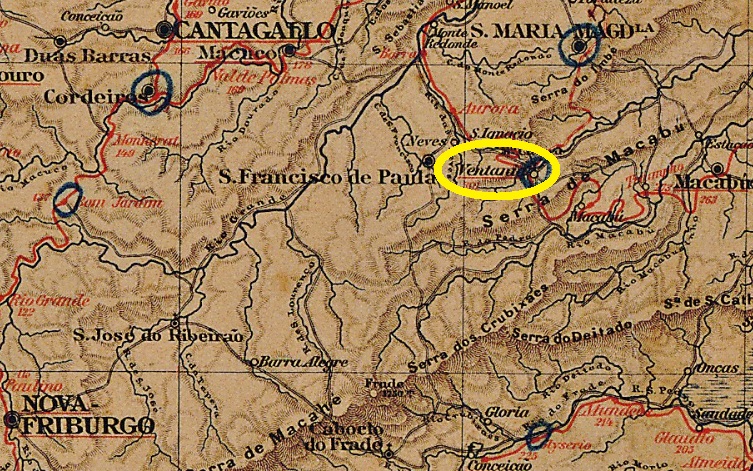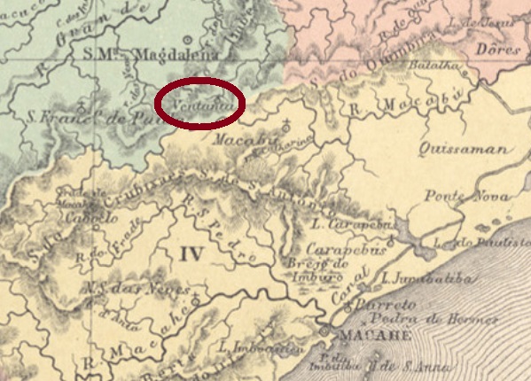 São João Evangelista da Ventania (= of the Strong Winds) was a curato – a church community with priest home – in the municipality of Santa Maria Magdalena, which was located about 240 km northeast of the imperial capital Rio de Janeiro. In June 1892, it rose to a district named Trajano de Moraes. This was a politically influential landowner of the region, who had died in 1911. It became a town in December 1929 and a municipality in March 1938.
