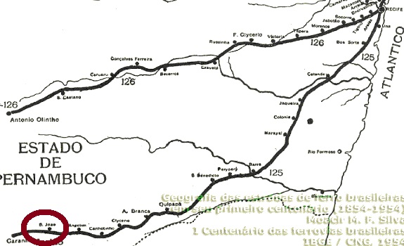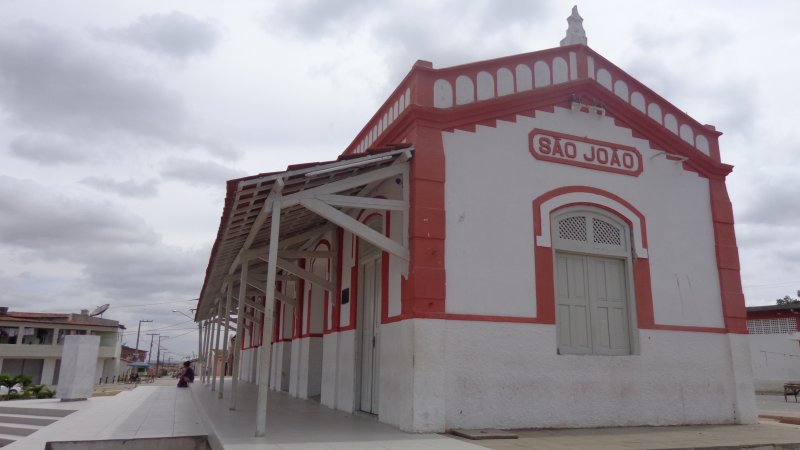 São João hieß der Bahnhof, der im Juli 1887 von der E.F. do Recife ao São Francisco Bahngesellschaft im Município von Garanhuns eingeweiht wurde. Er lag auf der so genannten Garanhuns-Abzweigung, ca. 230 km südwestlich der Provinzhauptstadt Recife entfernt. 1901 wurde die Bahnlinie von der Great Western Railway übernommen und ging von 1950 bis zum Betriebsende 1971 zur Rede Ferroviária do Nordeste über. Um den Bahnhof wuchs eine Siedlung, die im November 1958 zum Município von São João aufstieg. Nun sind die Bahnschienen abgerissen, aber das Bahnhofsgebäude wurde mustergültig restauriert und dient heute als Stadtbibliothek: