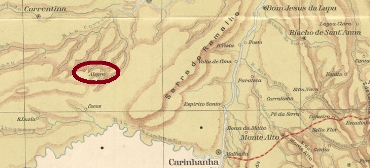 This locality was an Arraial (settlement) in the municipality of Carinhanha, situated more than 900 km west of the provincial capital Salvador da Bahia. In August 1923, it rose to a Villa called do Rio Alegre, but eight years later it was downgraded to the district of Santa Maria da Vitória. In 1938, the new name Coribe was added, and since August 1958 Coribe has been a municipality. The name is said to mean Merry River (Rio Alegre) in the Tupi-Guarani language.