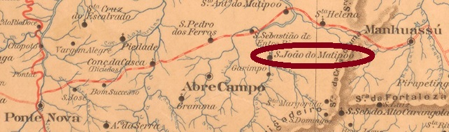 Wie Paula Sobrinho in seiner Historia Postal de Minas Gerais (Belo Horizonte, 1997) schreibt, gibt es dort ein Postamt seit Juli 1882. Ein früher Stempel von dort wurde gefunden, wahrscheinlich nicht der erste, datiert 1893-1910. SMG-2380b (Samml. Dieter Kerkhoff) hat einen Doppelkreis mit den Inschriften S. JOAO DE MATIPOO oben und (MINAS) unten, dazu Datum in der Mitte.