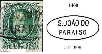 Two postmarks of the imperial period have been found. The first one, SRJ-1400a, was in use at least until 1878 and already made known by Paulo Ayres (Catálogo de Carimbos Brasil-Império, S. Paulo, 1937, 1942) under No. 1460, although PARAISO was mistakenly written with S here:
