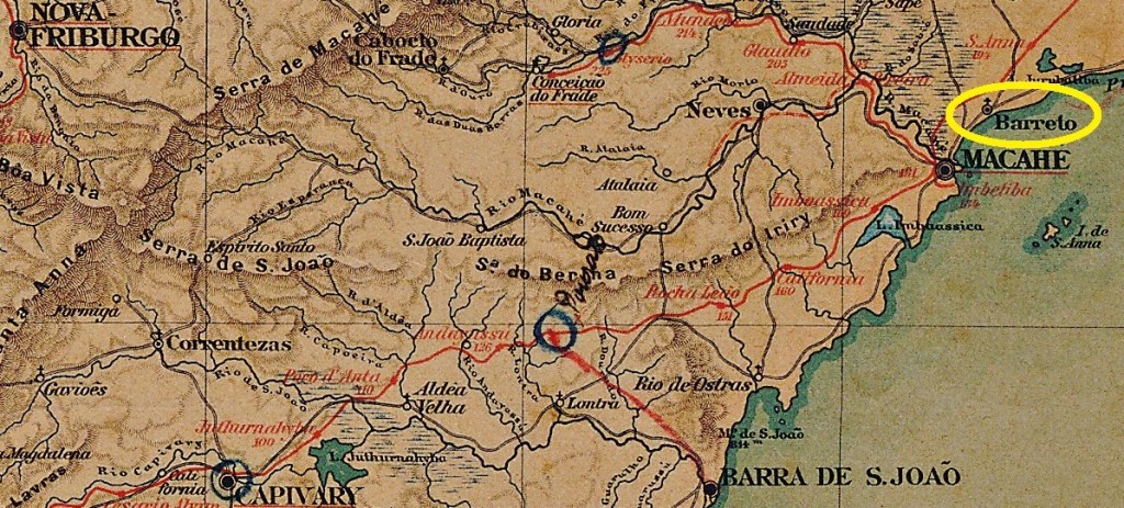 São José do Barreto was a small settlement near Macahe (now written Macaé), located directly on the Atlantic Ocean, 200 km west of the imperial capital Rio de Janeiro. In October 1857 it became a district, later a freguesia, which has since changed its name twice: to Cabiúnas (1938) and to Barra de Macaé (1969).