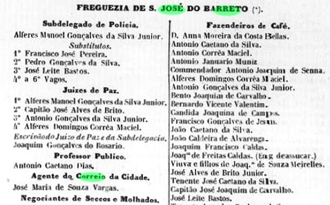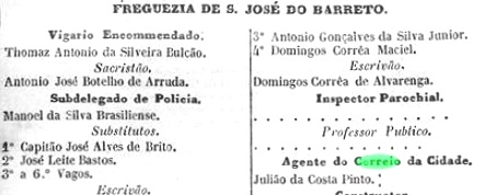 A postmark in the Empire was found: SRJ-1430a (Coll. José A. Junges) shows an ellipse with the inscription S. JÉ. DO BARRETO, found on stamps issued in 1866 and 1877.