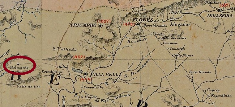 São José do Bello Monte (= on the beautiful mountain) was a district of Villa Bella (now Serra Talhada) about 470 km west of the provincial capital Recife. In June 1893, the village rose to a villa in own municipality. In 1943, the place changed its name to Maniçoba (the regional name for the cassava root) and in 1953 to the current São José do Belmonte.