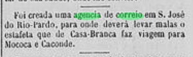 Das örtliche Postamt ist im Juli 1879 entstanden, wie aus der Presse im São Paulo hervorgeht: