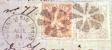 One local and one mute cancel were found. SSP-1180a (Coll. Fuad Ferreira Fo.) is a French type, with the inscription S. JOSÉ DO RIO PARDO above and the typical star between brackets below. The dates inside were found for the period 1884-1890. The mute cancellation (Coll. Fuad Ferreira Fo.) was found on a fragment from 1884, in connection with SSP-1180:
