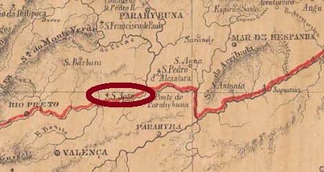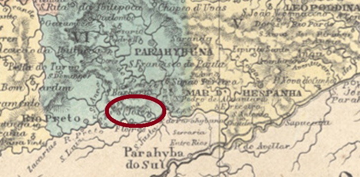 According to Paula Sobrinho (História Postal de Minas Gerais, Belo Horizonte, 1997), there has been a post office there since June 1879. A place cancel was found. SMG-2480a (Coll. Fuad Ferreira Fo.) has a double circle with the inscription. S. JOSÉ DO RIO PRETO above and an ornament in cross below consisting of four converging arrows. Dates inside from 1885 to 1902.
