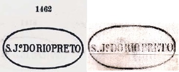 Ihm folgte SRJ-1460b (Samml. José A. Junges): ein Doppelkreis mit der Inschrift S. J. DO RIO PRETO oben. Die Daten in der Mitte wurden bisher für den Zeitraum 1879-1899 gefunden.