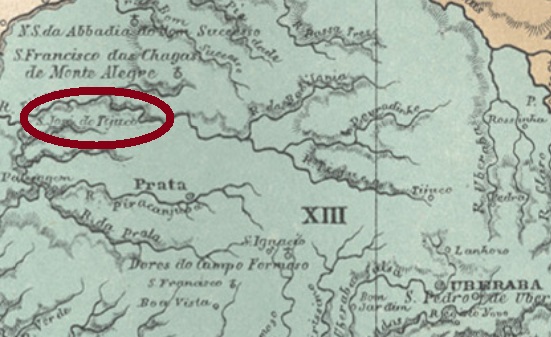 The word Tejuco (also Tijuco or Tijuca) is very common in Brazilian place names and means mud. From April 1839, São José do Tejuco was a freguesia near Prata, located on the South bank of the Tijuco River, about 750 km west of the provincial capital Ouro Preto. In September 1901, it became politically independent as the municipality of Villa Platina, which has been called Ituiutaba since September 1915. This name has Native American origin and means village on the river meadow.