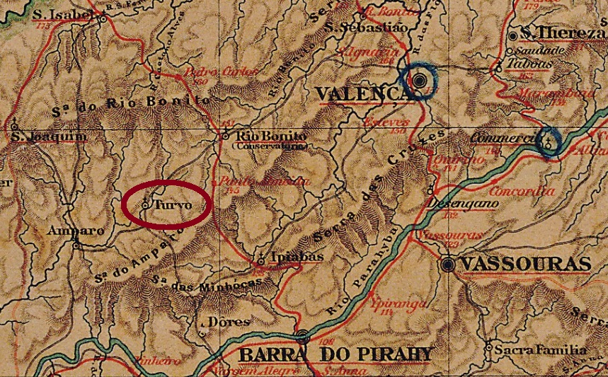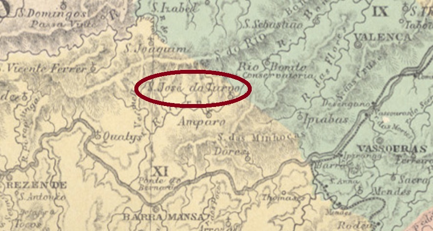 São José do Turvo was a former freguesia of Pirahy, located on the River Turvo, about 160 km northwest of the imperial capital Rio de Janeiro. In February 1890, it became a district of Barra do Pirahy. Between 1938 and 1943, the district was simply called Turvo, after then the old official name returned.