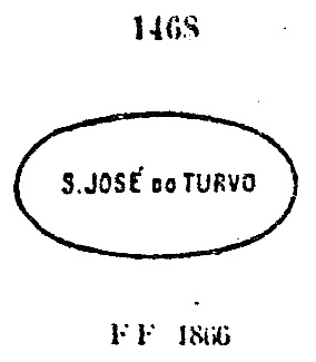 Ihm folgte SRJ-1465b (Samml. José A. Junges): ein Doppelkreis mit der Inschrift S. JOSÉ DO TURVO oben und einem Ornament unten, das aus einem kleinen Kreis mit zwei Halbkreisen als Seitenflügel unten. Daten in der Mitte von 1890 bis 1895.