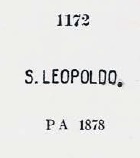 Ihm folgte der Französischer-Typus SRS-0345b (Abb. aus dem Internet): ein kleiner Doppelkreis mit der Inschrift SAŌ LEOPOLDO oben und dem Stern in Klammern unten. Daten in Inneren von ca. 1878 bis 1889. Der letzte Stempel im 19. Jahrhundert ist SRS-0345c (Samml. José L. Fevereiro), den es auch in violett gibt: im Doppelkreis lautet die Inschrift nun S. LEOPOLDO, unten gibt es ein X-förmiges Ornament, durch vier kleine Zweige gebildet. Daten in Inneren von 1890 bis mindestens 1918.