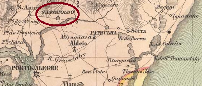 São Leopoldo in the São Pedro province was the arrival spot of the first German colonists in 1824 and played an important role in German immigration to Brazil. The village was located about 35 km north of the provincial capital Porto Alegre, became a freguesia in February 1830 and a villa in April 1846.