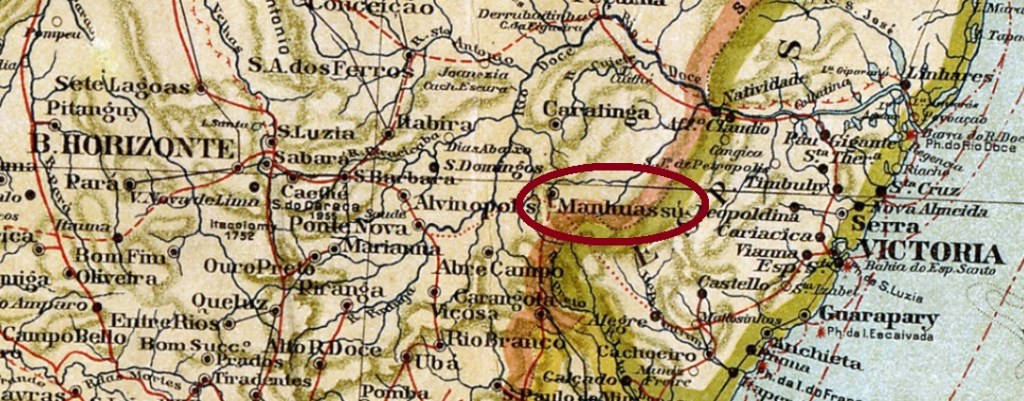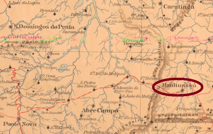 Diese war ab November 1875 eine Freguesia von Ponte Nova, die gut 200 östlich der Provinzhauptstadt Ouro Preto entfernt lag. Im November 1877 ging sie als Distrikt zum Município von São Simão über und wurde im Januar 1880 Verwaltungshauptsitz. Seit September 1881 ist es die Stadt Manhuassú (heute Manhuaçu geschrieben). Der Manhuaçu ist ein Zufluss des Rio Doce; sein indianischer Name bedeutet Große Regen.