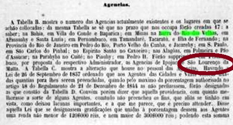 Three dates of origin for the local post office have been identified. First, the Imperial Postal Report (Relatório Postal) for 1860 mentions 1854. Then Nova Monteiro in Administrações e Agencias Postaes do Brasil Imperio (Brasil Filatelico/RJ, 1934-5; Reprint SPP 1994-1999) writes January 1855. The agency was already closed around 1858, as shown in the February 1859 report of the General Postal Directory (Directoria Geral dos Correios):