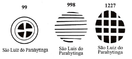 Der erste Poststempel im Doppelkreis ist SSP-1195c (Samml. José A. Junges). Die Inschrift oben lautet S. LUIZ, und unten steht (C), für Stadt (Cidade). Nur ein Exemplar aus 1878 gefunden. Ihm folgte der bisher einzige Stempel mit dem vollständigen Ortsnamen. Der Französischer-Typus SSP-1685a wurde auch von P. Ayres abgebildet, diesmal auf S. 118: