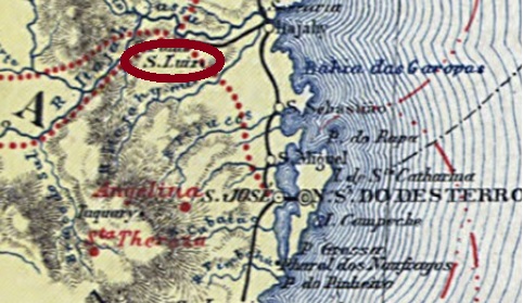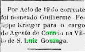 Der kaiserliche Poststempel ist SSC-0230a (Samml. José A. Junges), ein Doppelkreis mit den Inschriften S. LUIZ GONZAGA oben und (SA. CATHARINA) unten. Die Daten in Inneren wurden für 1888 und 1889 gefunden.