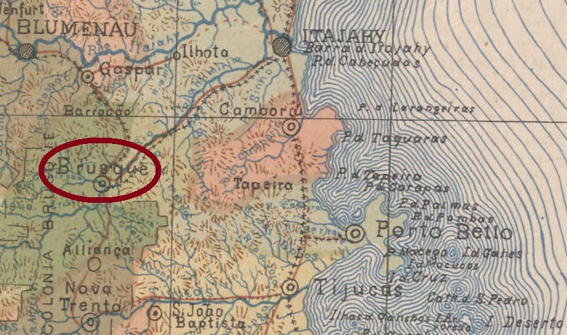 Diese Ortschaft war ab Juli 1873 ein Distrikt von Itajahy, der ca. 100 km nordwestlich der Provinzhauptstadt Desterro (heute Florianópolis) entfernt lag und im März 1881 zur Villa erhoben wurde. Diese wurde im Januar 1890 zu Brusque umbenannt, im Andenken an Francisco Carlos de Araújo Brusque (1822-1886) der Provinzpräsident in Santa Catarina von 1859 bis 1861 war. Seit September 1916 ist Brusque eine Stadt.