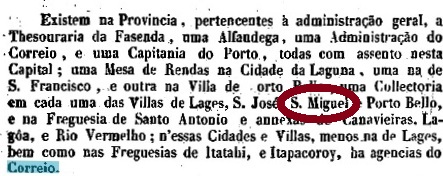 Although the next opening of the post office was not announced until 1875 in the report of the provincial president, the similar report of January 1850 indirectly mentioned the existence of a post office in São Miguel: