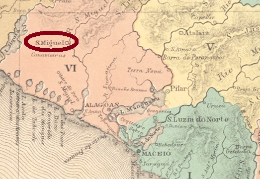 São Miguel dos Campos was a freguesia in the municipality of Alagoas (today: Deodoro), which became a villa in July 1832 and was declared a town in June 1864. The village is located about 50 km southwest of the provincial capital Maceió and had almost 20,000 inhabitants at the end of the Empire.