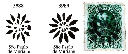 As Paula Sobrinho writes in Historia Postal de Minas Gerais (Belo Horizonte, 1997), there has been a post office there since March 1862. A postmark of the imperial period was found, unfortunately probably not the oldest. SMG-2540b (Coll. José A. Junges) appears in turquoise and carmine and is a double circle with the inscription S.P. DE MURIAHÉ at the top. The dates in the centre have so far been found for the period 1878-1891.