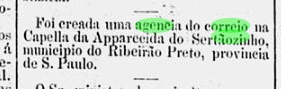 The local post office was established at the beginning of 1887, as can be seen from the Rio press: