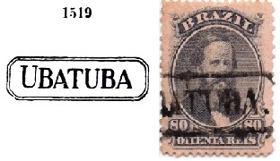 Danach kamen zwei Stempel in Doppelkreisen. USP-1445d (Samml. José L. Fevereiro) ist ein französischer Typus, mit der Inschrift UBATUBA oben und dem Stern zwischen Klammern unten. Die Daten in der Mitte gehen von 1884 bis 1888. USP-1445e (Samml. José A. Junges) ist ähnlich wie sein Vorgänger, nun sind hier die Buchstaben etwas größer, und der Stern unten Fehlt. Daten: 1890 bis 1893.