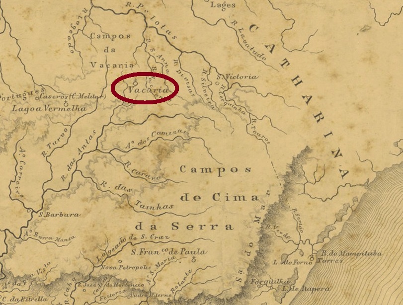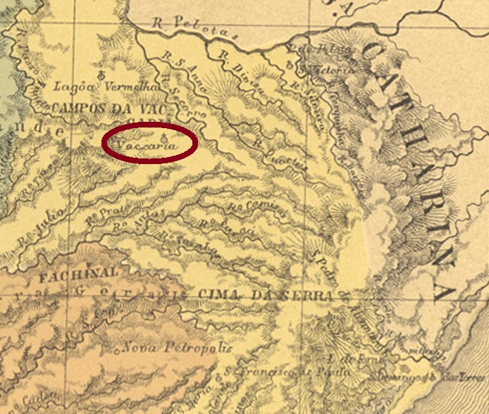 The chapel of Nossa Senhora de Vaccaria was built in December 1761 and was located 240 km north of the future provincial capital Porto Alegre. In October 1805, it was elevated to the Freguesia of the Vila of Sto. Antonio da Patrulha, and from April 1878 Vaccaria was an independent vila.