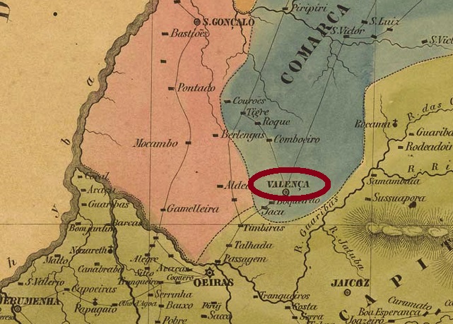 This other Valença locality, now in northern Brazil, was already a vila in June 1761, located on the west bank of the Valentim River, over 200 km southeast of the future provincial capital of Teresina. In December 1889, it was elevated to the status of a town, after which the place name changed twice: in December 1943 to Berlengas and in July 1948 to Valença do Piauí, which is still current today.