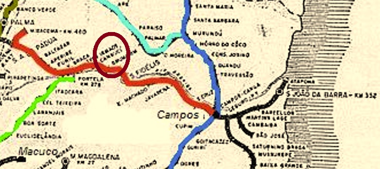 This station was inaugurated in July 1880 by the E.F. Santo Antonio de Padua Railway Company and was located on the north bank of the Paraíba do Sul River in the Município of São Fidélis, 300 km northeast of the capital Rio de Janeiro. The line changed hands in 1884 to E.F. Macahe e Campos, in 1887 to E.F. Leopoldina, and from 1975 until its closure in 1996 it belonged to Rede Ferroviária Federal S.A. (estacoesferroviarias.com.br). The name Vallão das Antas means Creek of the Tapirs, but from about 1886 the station was renamed Cambucy. The local jurisdiction changed to the Município of Monte Verde in May 1891, and since October 1918 Cambuci (as it is written today) has been an independent municipality.