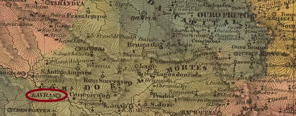 The parish of Sant’Anna de Lavras do Funil was established in July 1813 in the Município of Turvo, close to the south bank of the Rio Grande, about 250 km southwest of the former provincial capital of Ouro Preto. Funil means funnel, and this is still the name of a dam on the Rio Grande about 30 km away. The village rose to the status of Vila in October 1831 and has been a town since July 1868, when it was simply called Lavras.