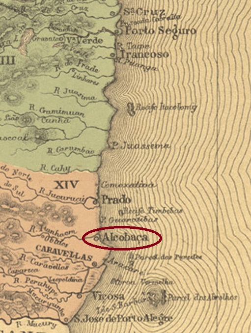 The settlement of Alcobaça was founded around 1750 by Portuguese, who supposedly have come from the town of the same name in Portugal, and was located on the north bank of the mouth of the river Itanhem, over 800 km south of the later provincial capital of Salvador da Bahia. The place became a vila in March 1755 and a town in July 1896.