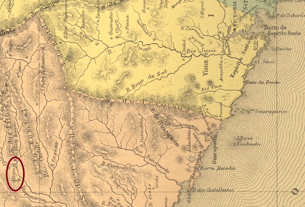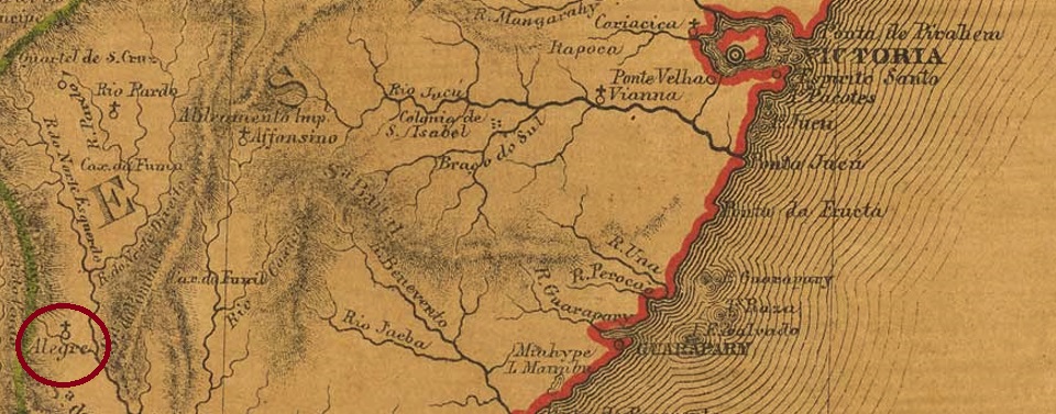 The Freguesia of N. Sra. da Conceição do Alegre was founded in July 1858 in the Município of Cachoeiro do Itapemirim and was located on the river Alegre, a tributary of the Itapemirim, 180 km southwest of the state capital Vitória. The place rose to the Vila of N. Sra. da Penha do Alegre in April 1884.