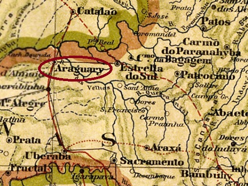 Wie Paula Sobrinho in História Postal de Minas Gerais (Belo Horizonte, 1997) schreibt, gab es in Brejo Alegre ein Postamt seit September 1883. Bisher wurden Poststempel mit dem neuen Ortsnamen Araguary mit Daten von 1890 bis 1902 gefunden, aber möglicherweise gibt es auch frühere Exemplare vom AMG-0105a (Samml. FM). Dieser Doppelkreis hat die Inschriften ARAGUARY oben und (MINAS) unten.