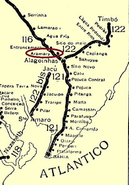 Der Bahnhof Aramary wurde im November 1880 durch die E.F. da Bahia ao Rio São Francisco Bahngesellschaft eingeweiht und lag am Westufer des Flusses Catu im Município von Alagoinhas, 130 km nördlich der Provinzhauptstadt Salvador. Die Bahnlinie wechselte 1896 zur E..F. do São Francisco, 1911 zur Chemins de Fer Fédéraux de l’Est Brésilien, 1935 zur V.F.F. Leste Brasileiro und von 1975 bis zur Streckenstilllegung 1996 gehörte sie der Rede Ferroviária Federal S.A. (estacoesferroviarias.com.br). Zwischen ca. 1940 und ca. 1950 hieß der Bahnhof Graciliano de Freitas, in Erinnerung an einem Politiker, der Bürgermeister von Alagoinhas, Senator und auch Postverwalter in Bahia war. Heute sind die Schienen noch da, das Bahnhofsgebäude wird von der Stadtverwaltung benutzt.
